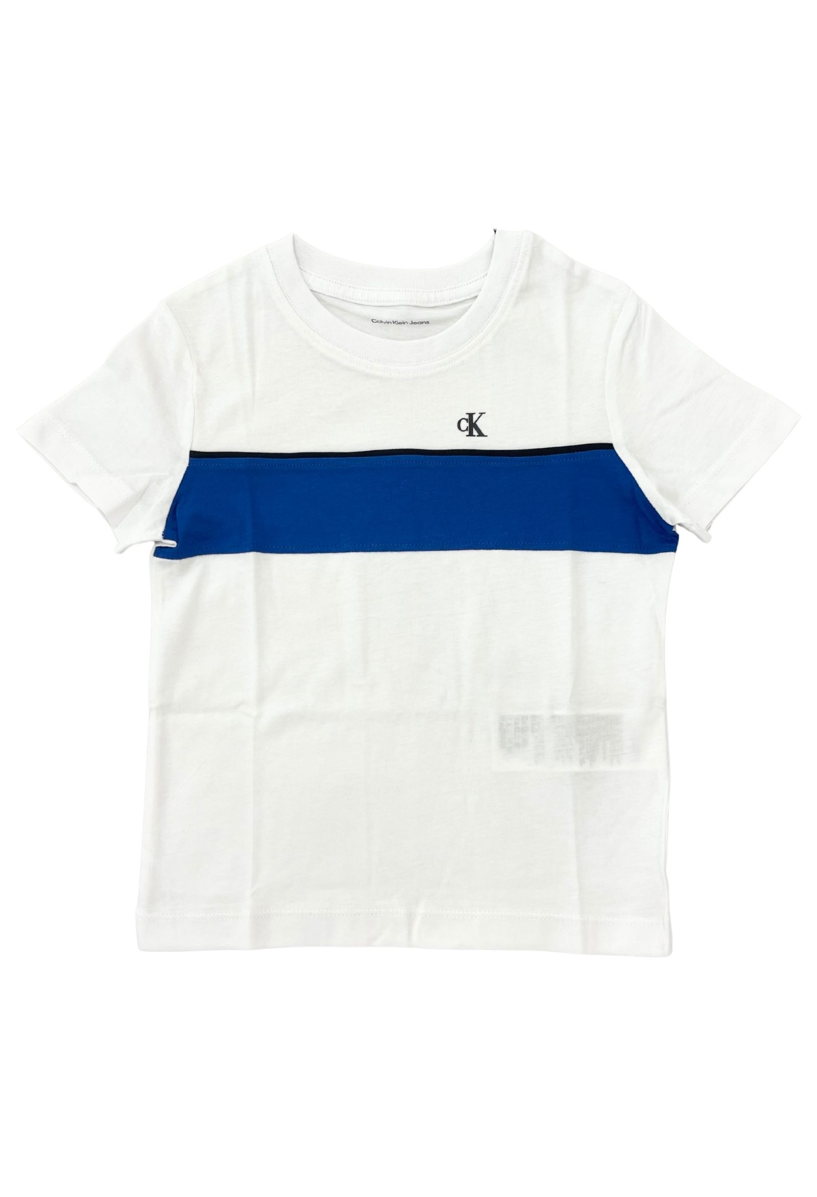 t-shirt calvin kleincolore bianco e bluettetessuto cotonemodello girocollologo in rilievo frontale