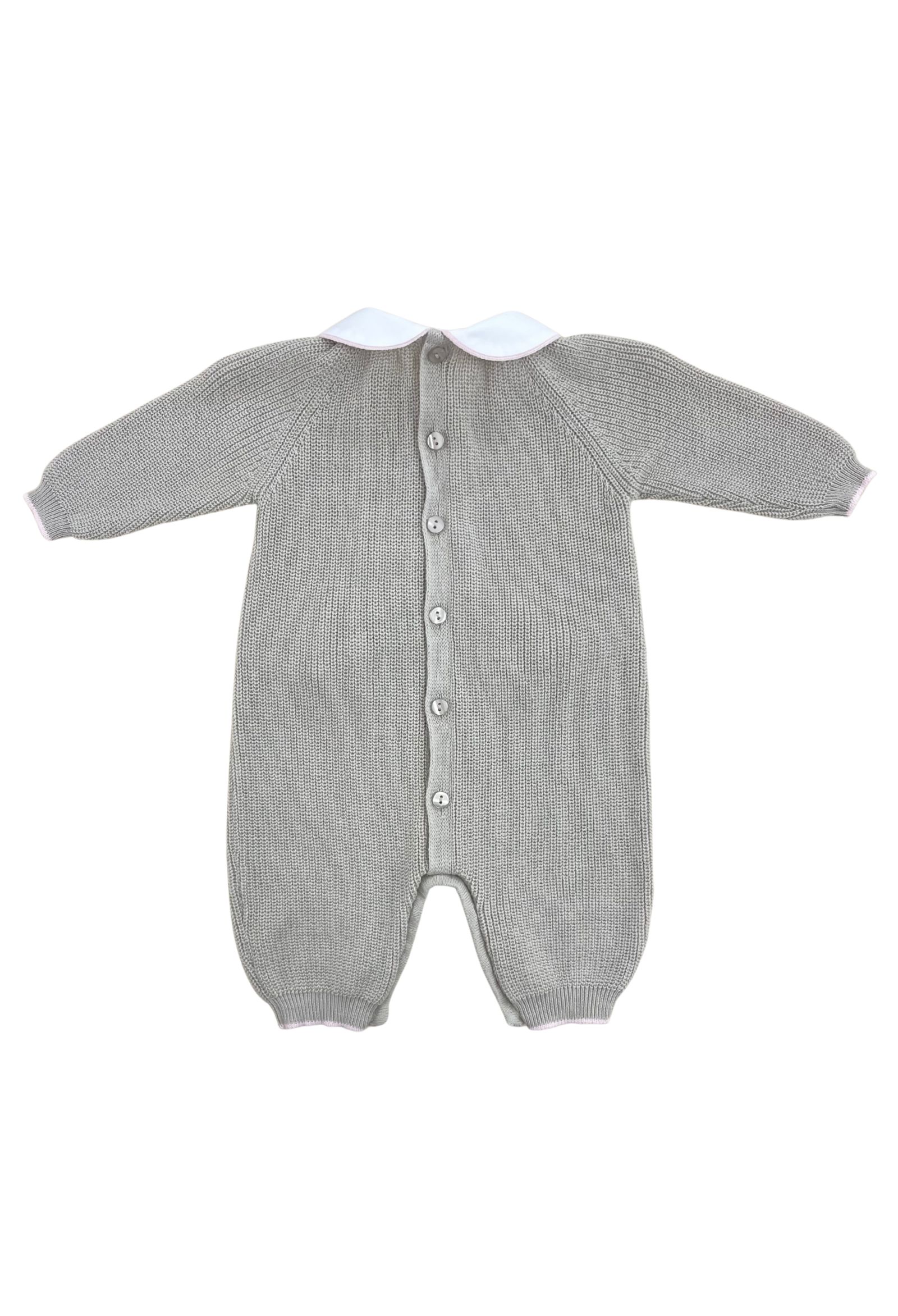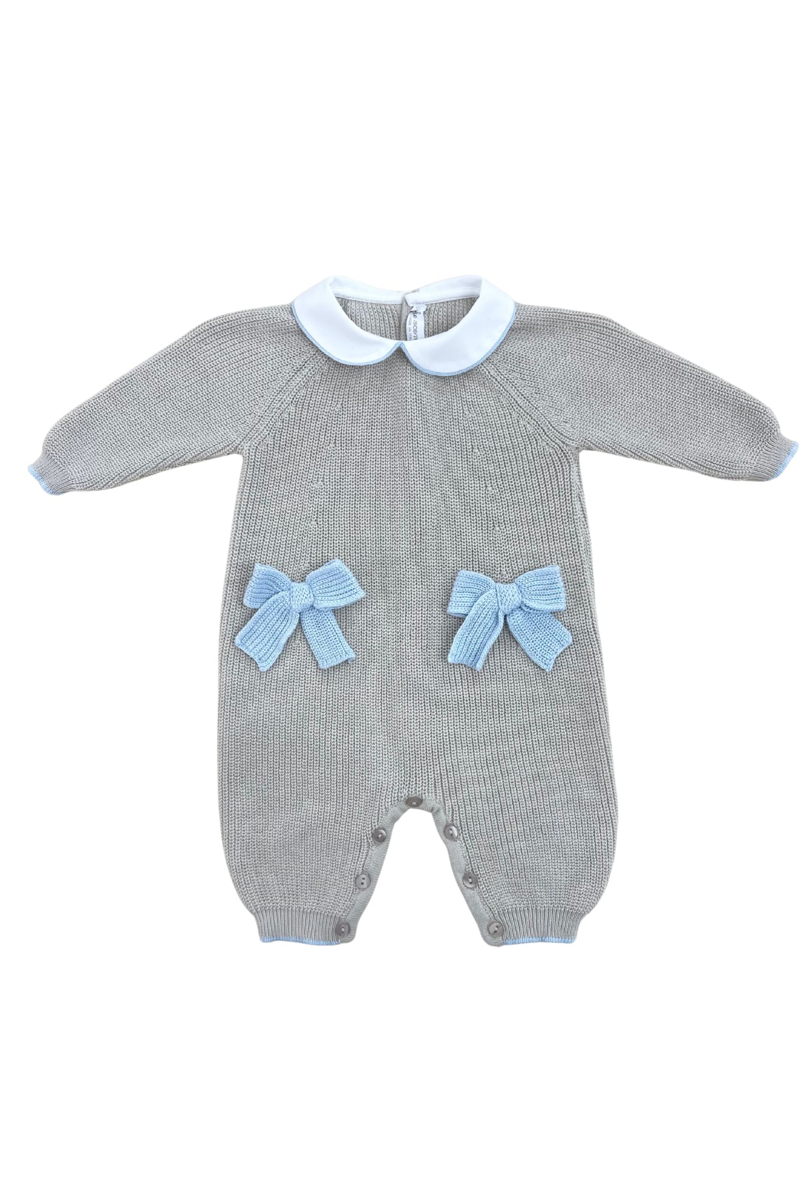 tutina Le Coconnècolore biscotto e cielotessuto filo di cotonecolletto in cotone fiocchetti ricamatiapertura posteriore e zona pannolino