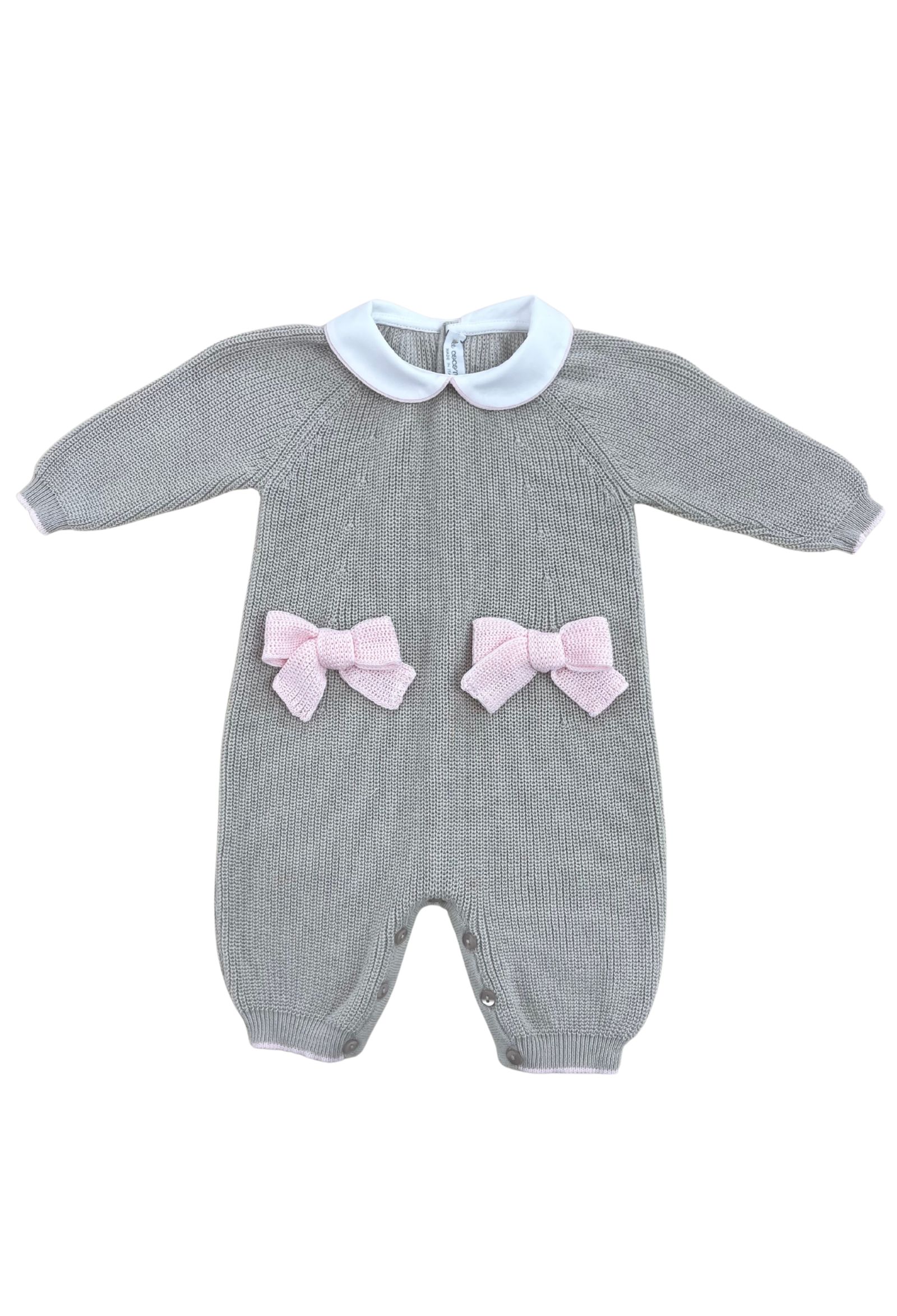 tutina Le Coconnècolore biscotto e rosatessuto filo di cotonecolletto in cotone fiocchetti ricamatiapertura posteriore e zona pannolino