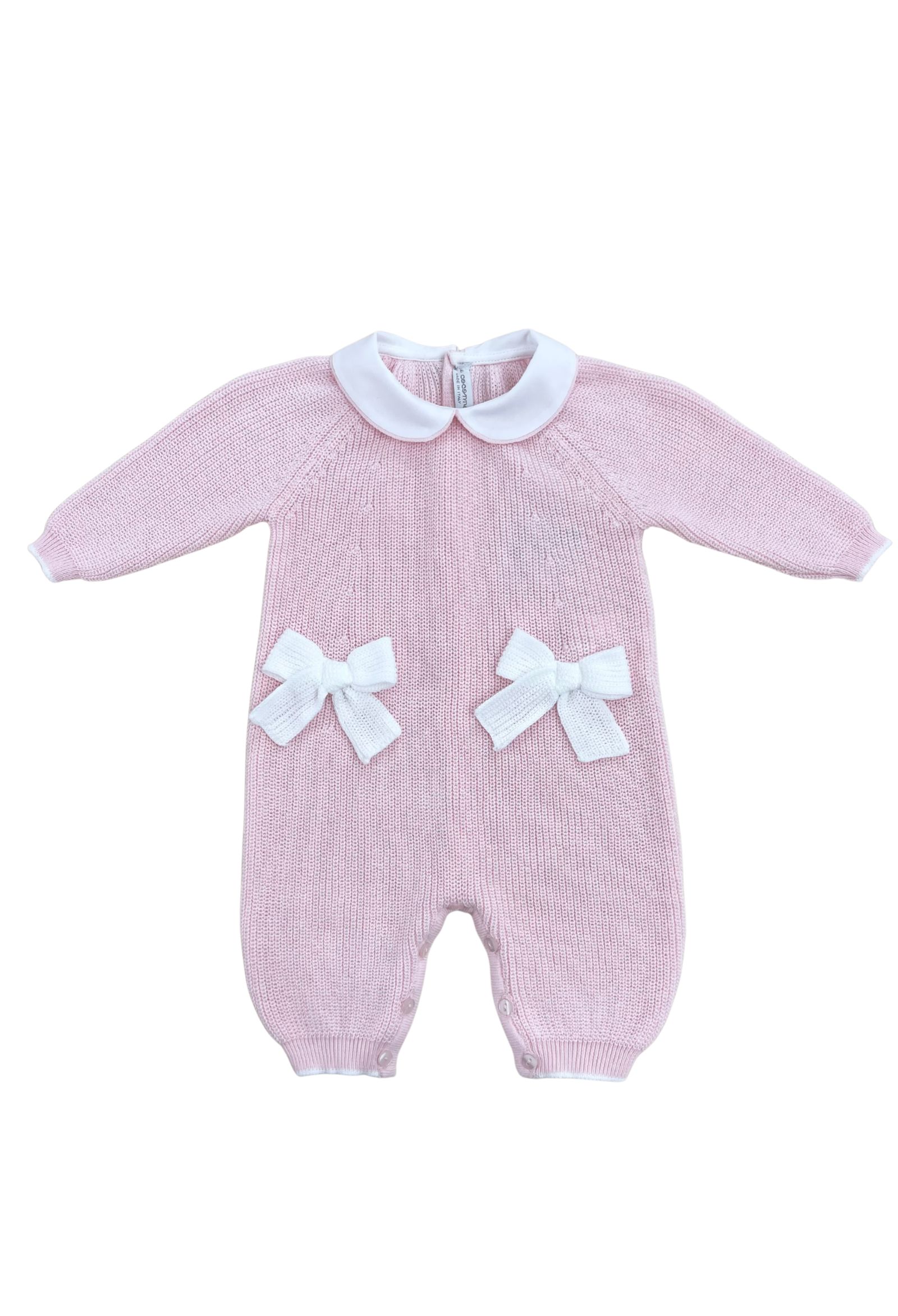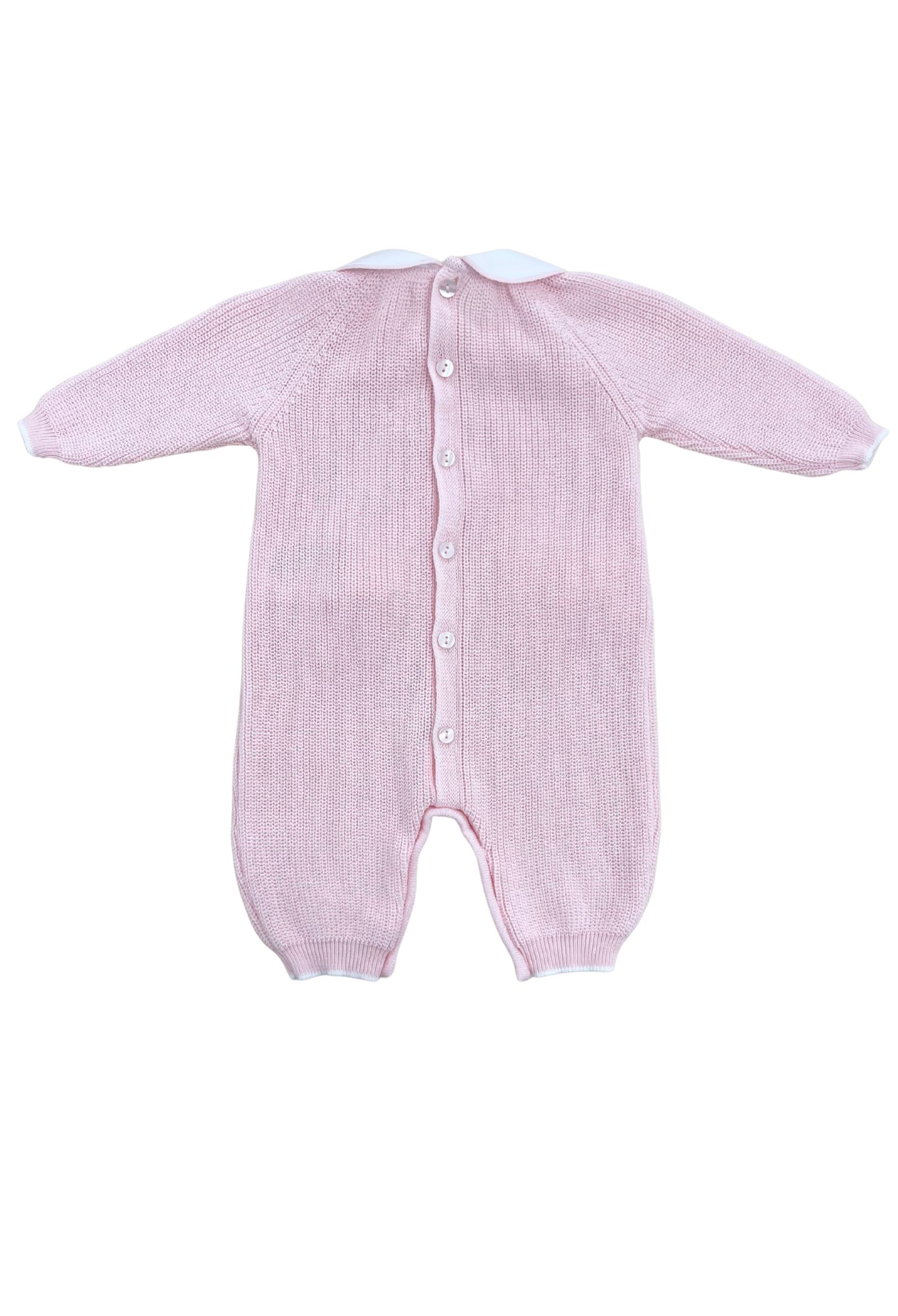 tutina Le Coconnècolore rosatessuto filo di cotonecolletto in cotone fiocchetti ricamatiapertura posteriore e zona pannolino