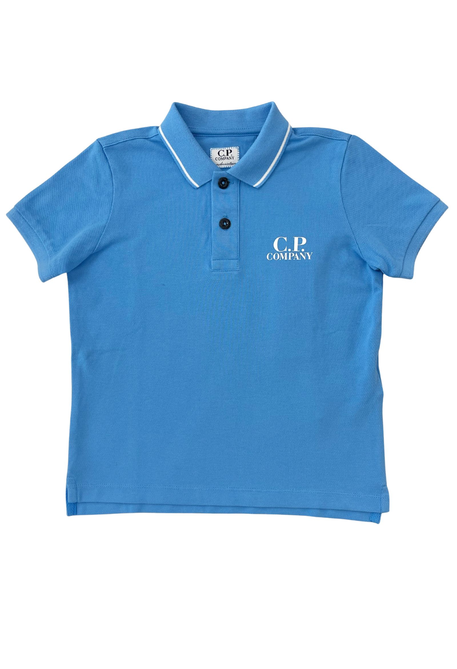 Polo Cp Companycolore azzurrotessuto cotoneapertura al collo con bottoncini logo in rilievo forntale vestibilità slim