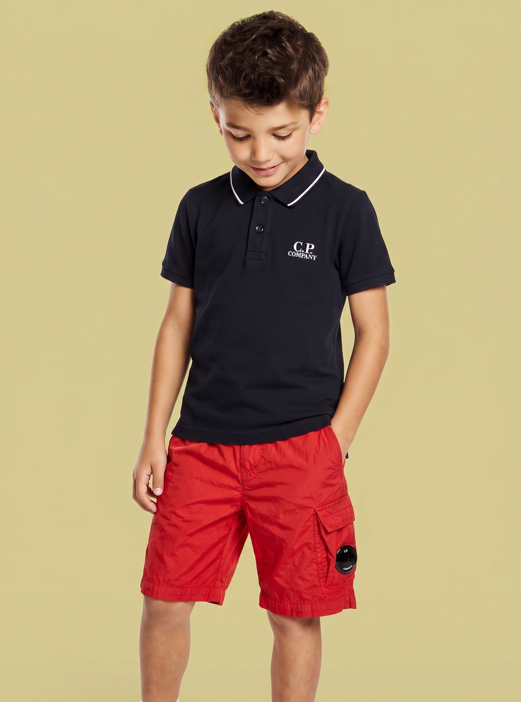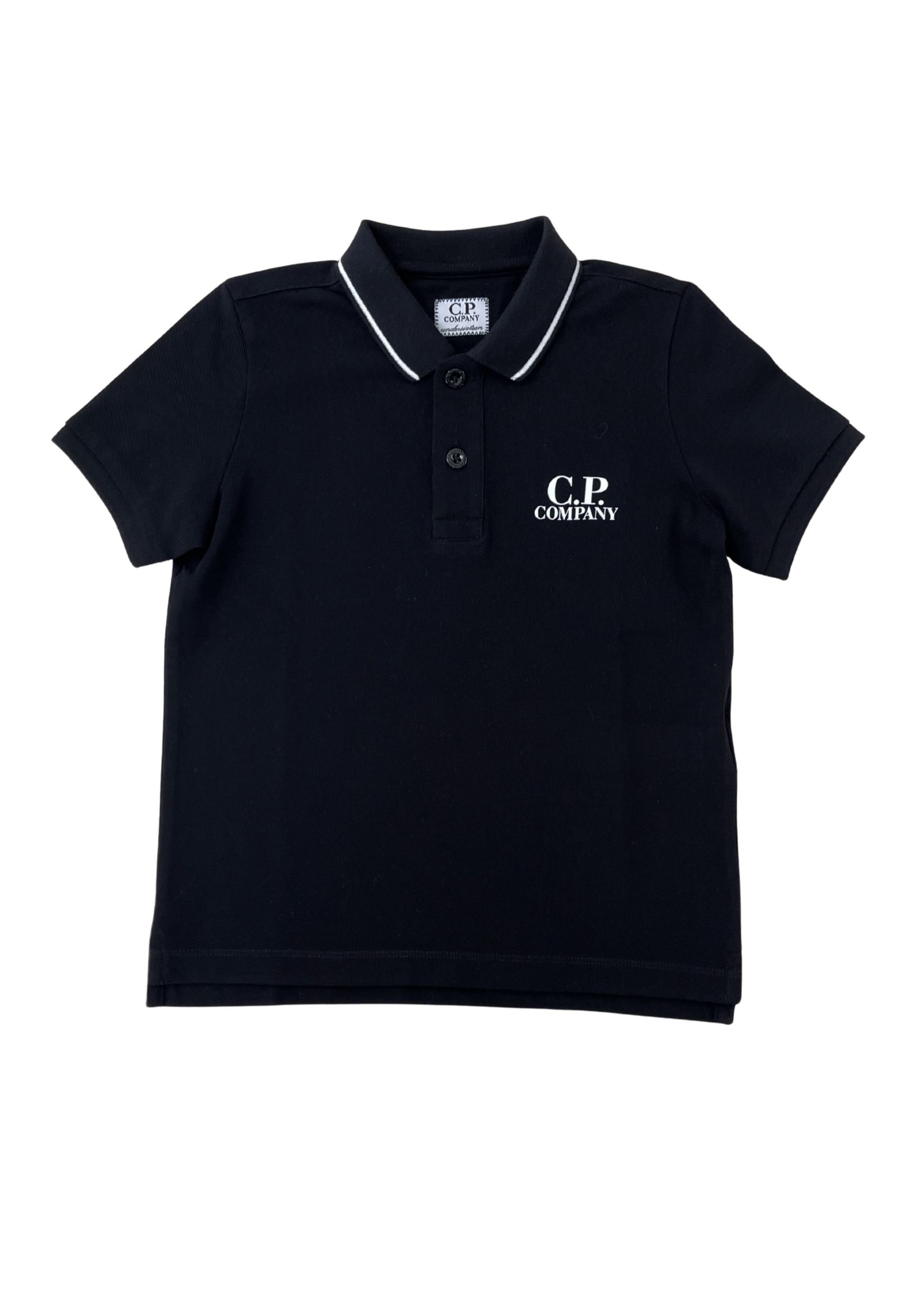 Polo Cp Companycolore nerotessuto cotoneapertura al collo con bottoncini logo in rilievo forntale vestibilità slim