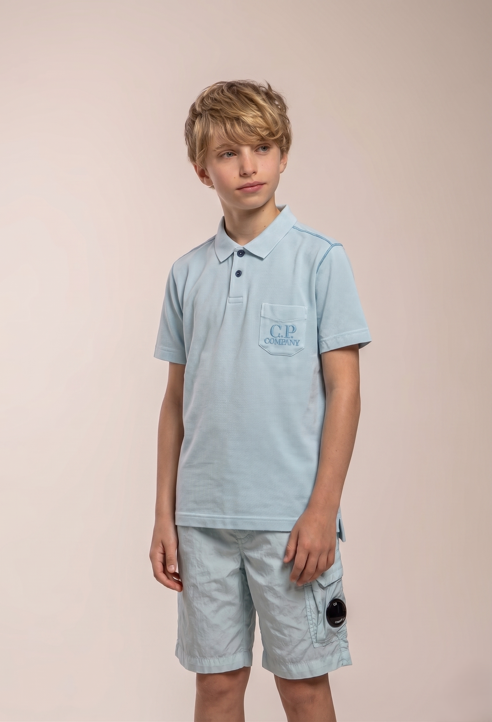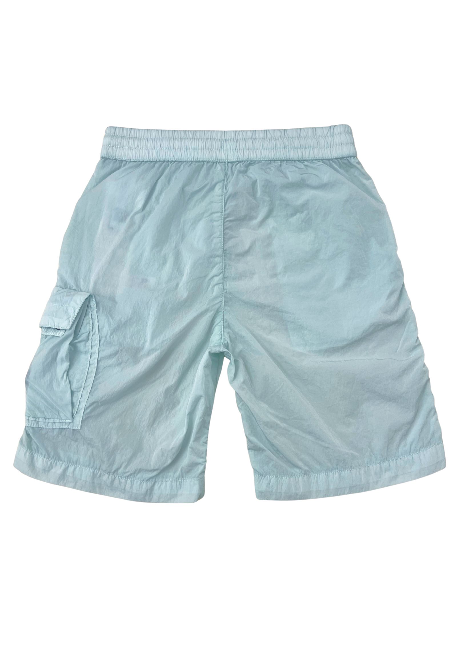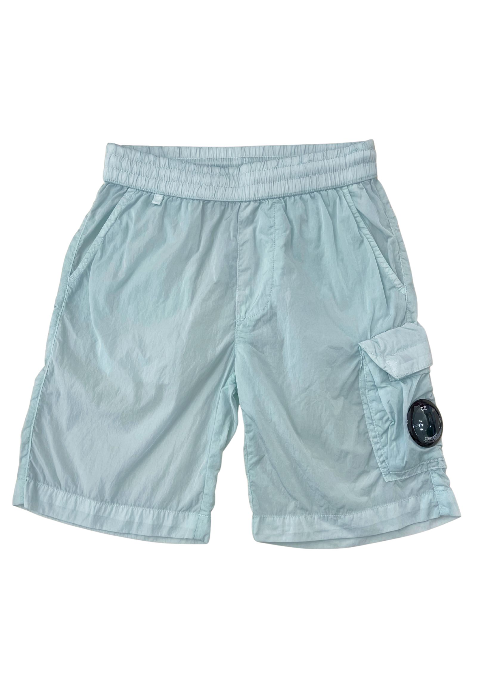 Short CP COMPANYcolore sky blueTasca cargo con patta e lenteTessuto nylon Elastico in vita Spacchi lateraliRegular fit
