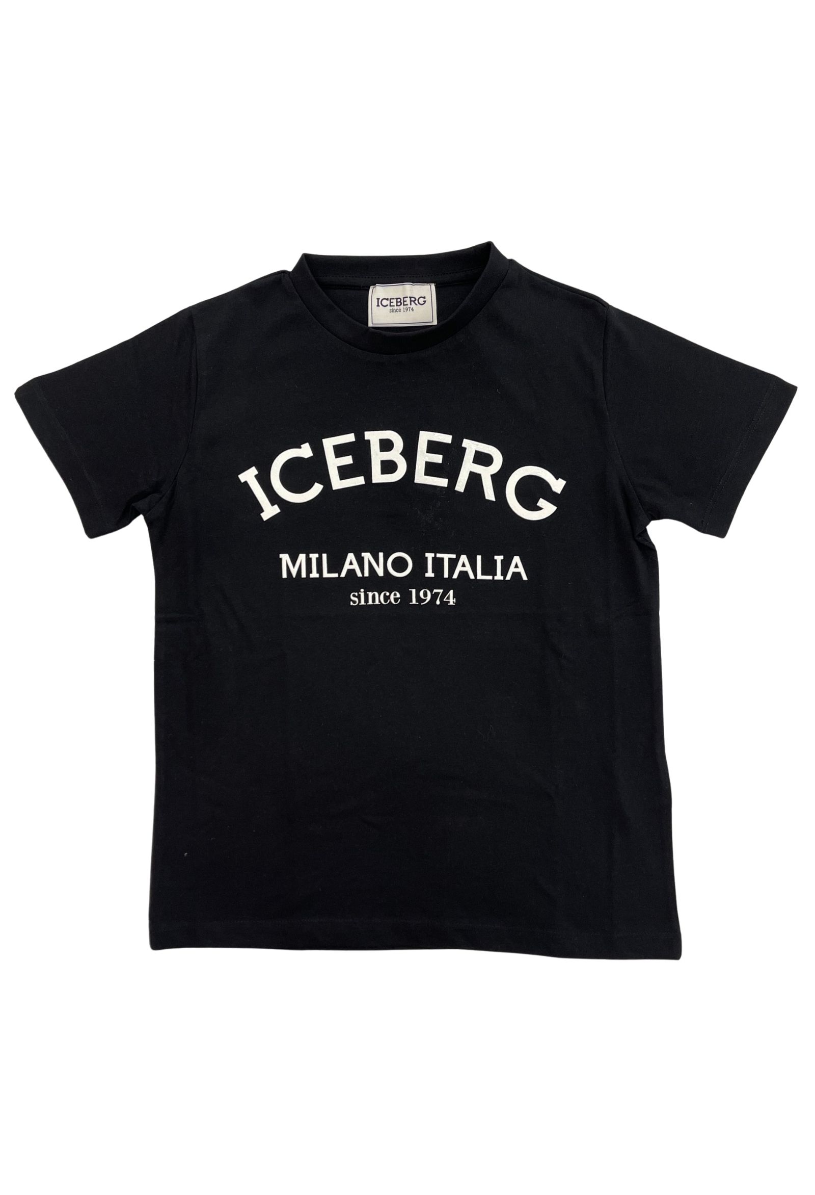 t-shirt icebergcolore nerotessuto cotonemodello girocollologo lucido in rilievo bianco