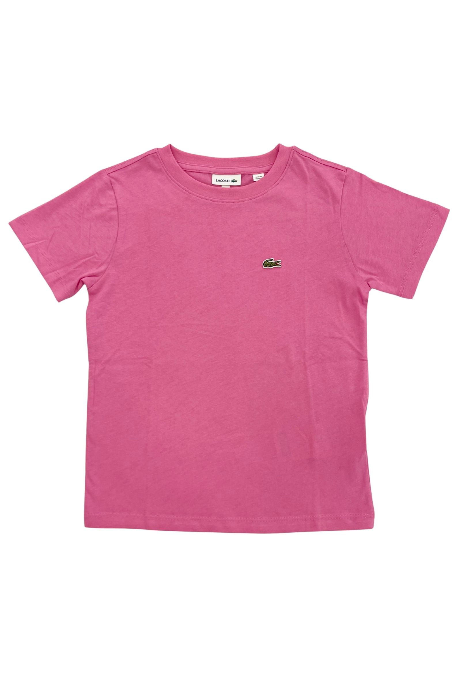 t-shirt Lacostecolore fucsiatessuto cotonemodello girocollologo ricamato frontale