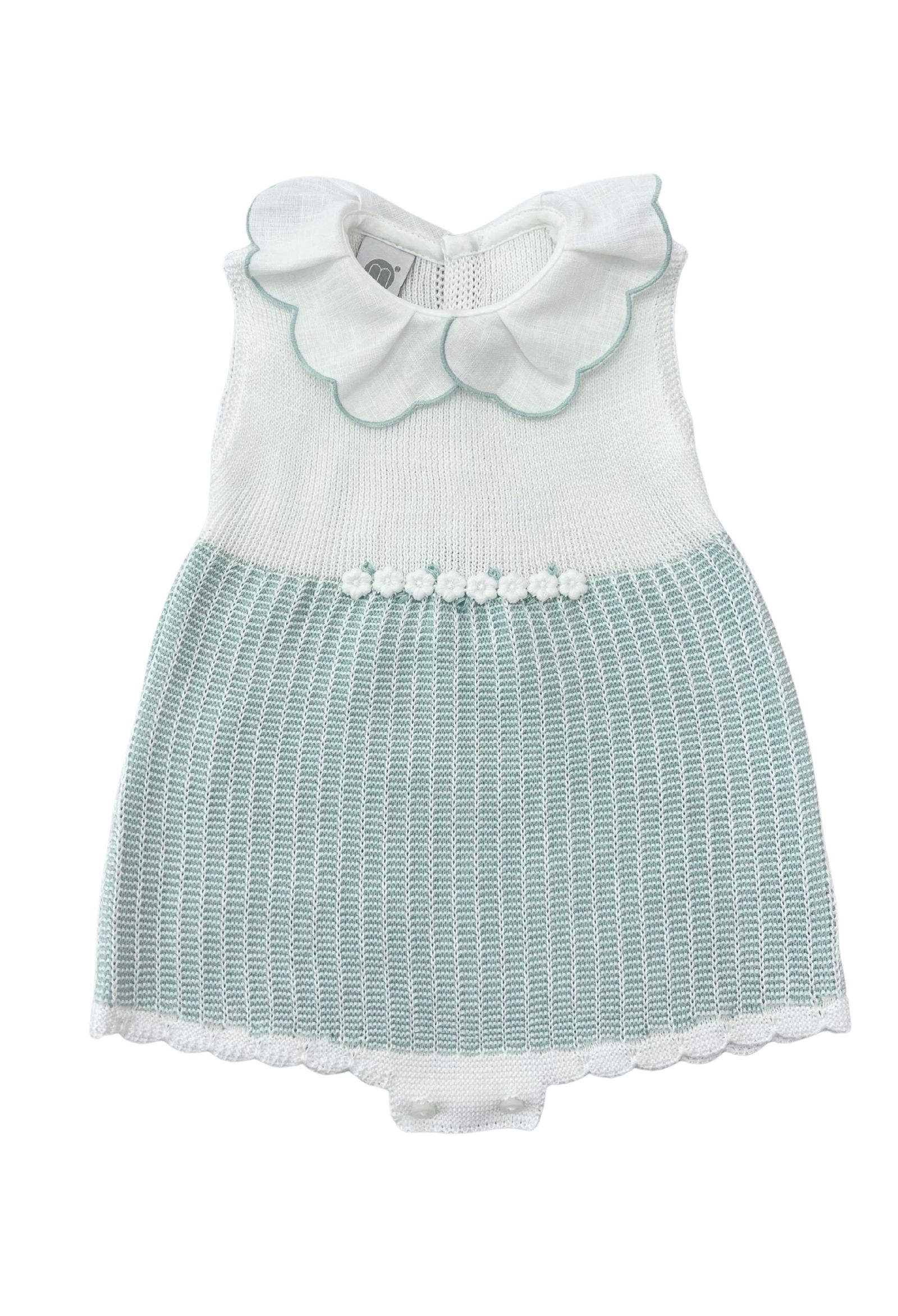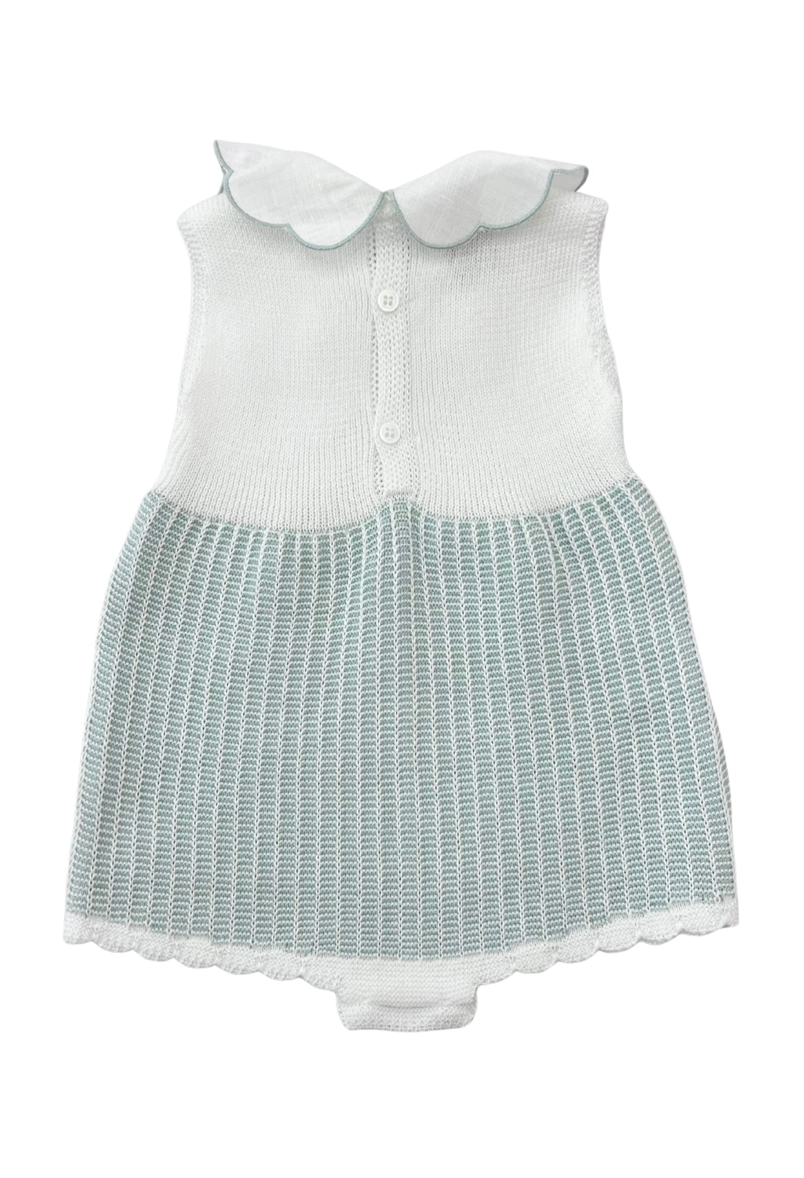 pagliaccetto marlùcolore bianco e verdetessuto filo di cotoneapertura posteriore colletto in lino con bordino verde