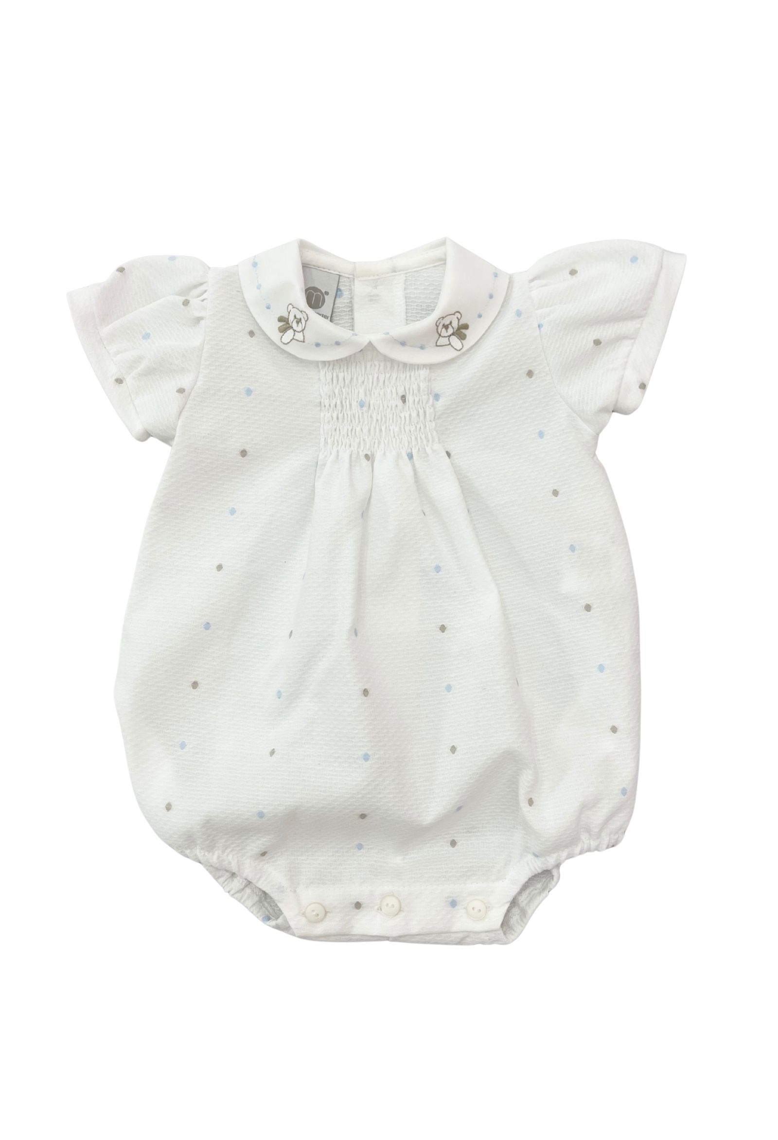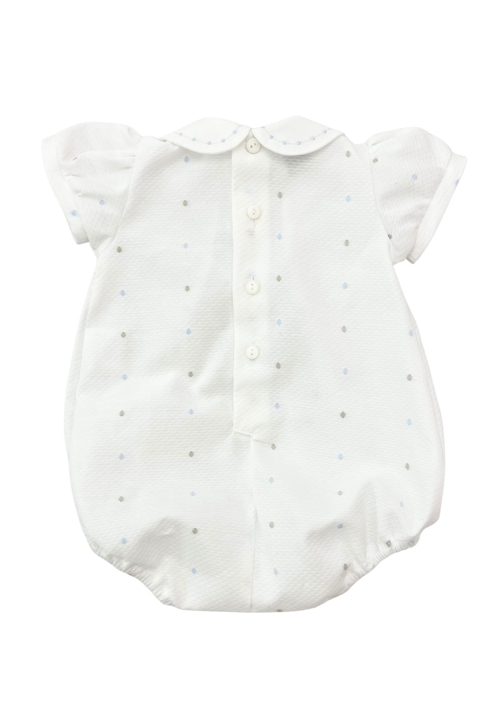 colore bianco con pois azzurri e beige
