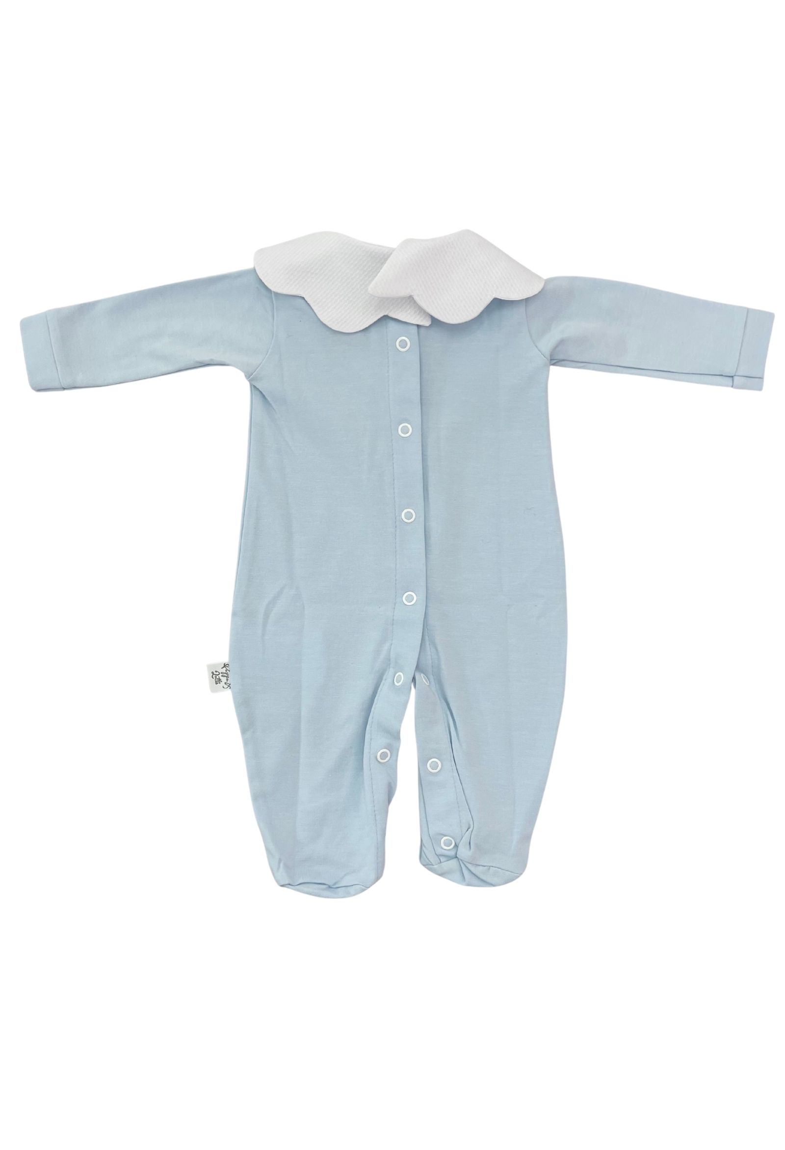 tutina pappa e lattecolore cielotessuto cotonecolletto bianco apertura posteriore